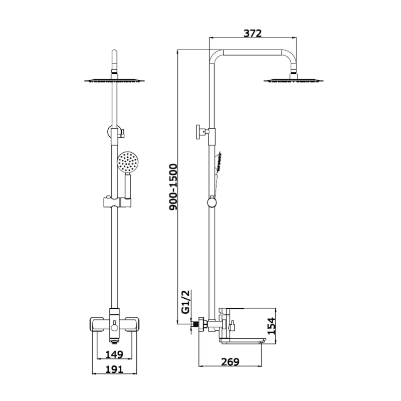 Душевая система с тропическим душем VIEIR V103562C (черная)