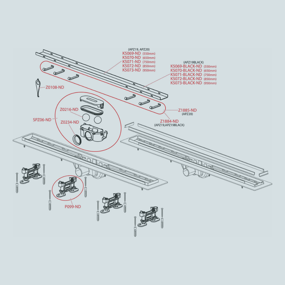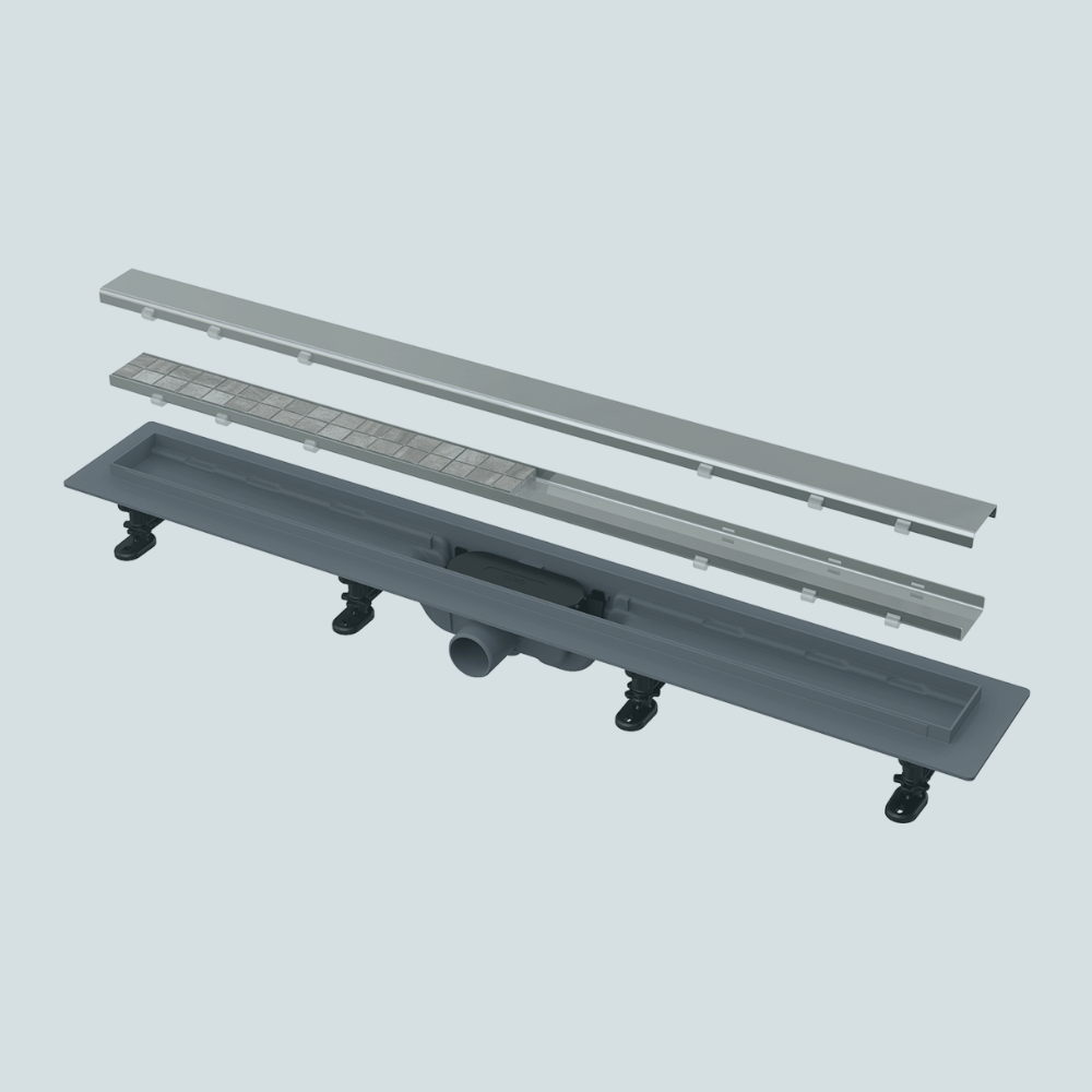 Трап (лоток, желоб) душевой с двухсторонней решеткой Alcadrain APZ19 (550, 650, 750, 850, 950 мм)