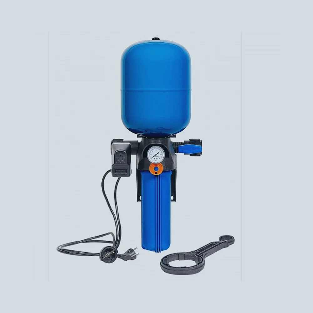 Насосная станция Valfex серии КРАБ-Т — это готовое решение для организации автономного водоснабжения. В одном компактном корпусе объединены: встроенная автоматика управления насосом, гидроаккумулятор для снижения количества пусков насоса и поддержания давления, а также корпус для магистрального фильтра тонкой очистки воды (SLIM LINE 10″ или BIG BLUE 20″). Станция предназначена для работы с любыми поверхностными и погружными насосами, управляя их включением и отключением в зависимости от расхода воды.