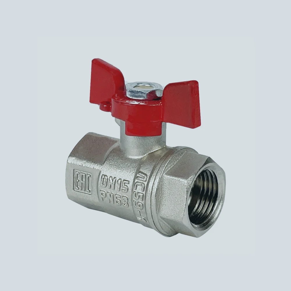 Кран шаровой ВР-ВР латунный с никелевым покрытием (ручка-бабочка) VALFEX PREMIUM