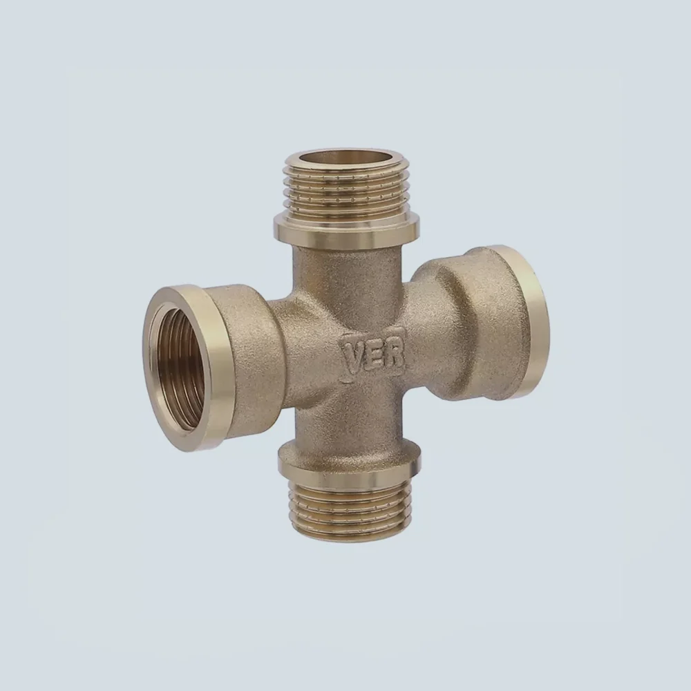 Крестовина XFM-3 — это резьбовой фитинг, предназначенный для создания разветвления трубопровода на четыре направления с чередующимися типами соединений: внутренняя и наружная резьба. Изделие используется для соединения труб, подключения сантехнической арматуры, приборов контроля и регулирования в системах водоснабжения, отопления, технологических трубопроводах и системах полива. Фитинг изготовлен из латуни CW617N.