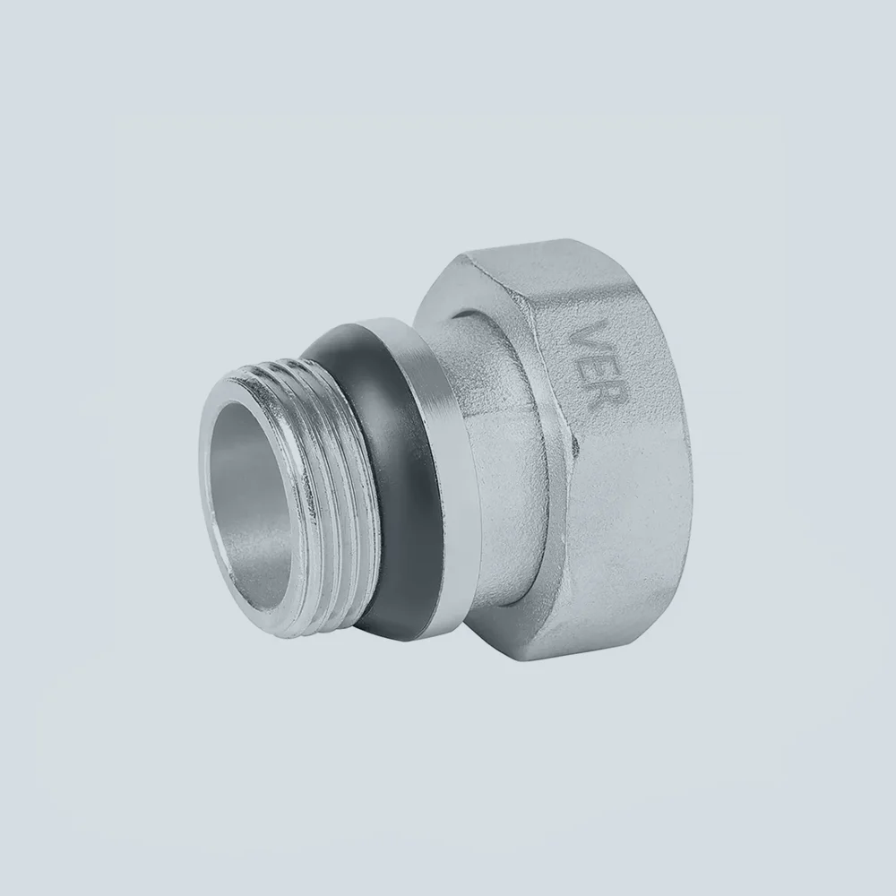 Штуцер латунный присоединительный с накидной гайкой и кольцевым уплотнением ViEiR VRG55N (1″ ВР × НР)