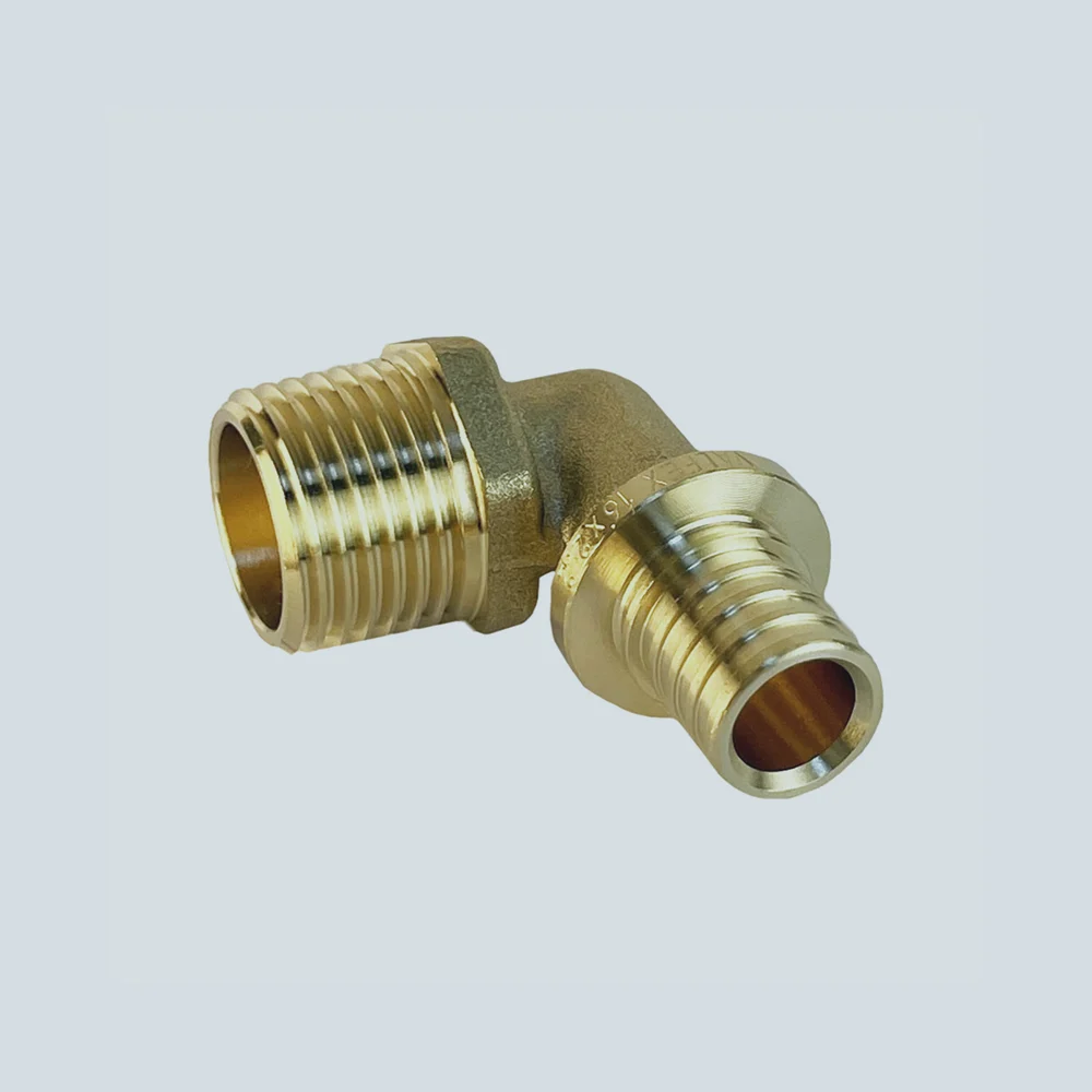 | Назначение | Поворот трубопровода на 90° с переходом на наружную резьбу |
