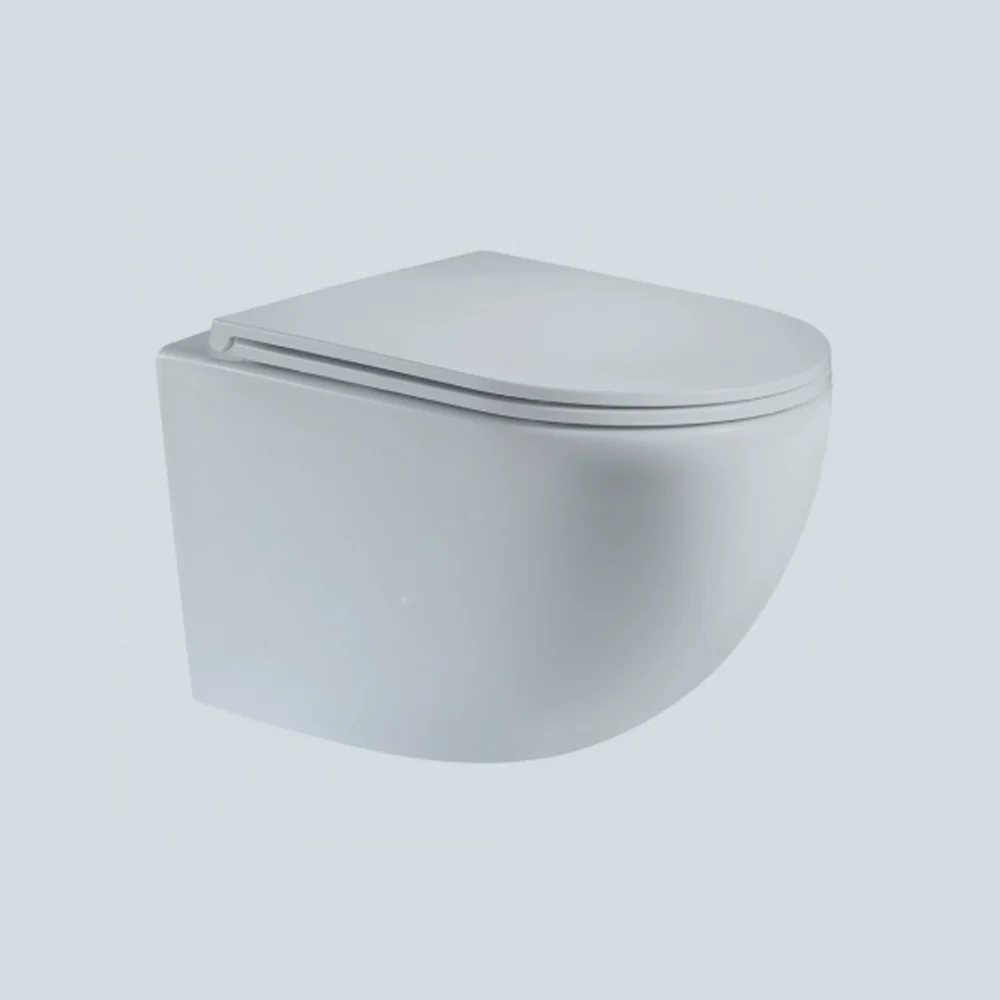 Современный подвесной унитаз с гигиеничным безободковым дизайном и системой смыва Vortex.