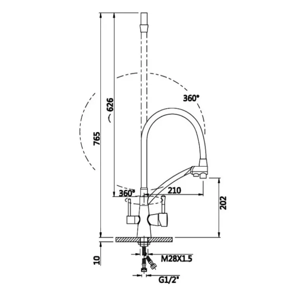 Смеситель для кухни с гибким изливом и подключением к фильтру VIEIR V15007G (графит)