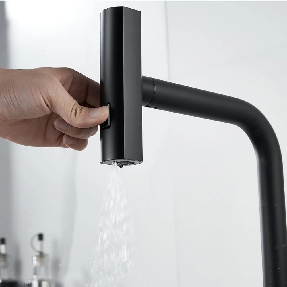 Смеситель для кухни с выдвижной лейкой из нержавеющей стали VIEIR V15054C (черный)